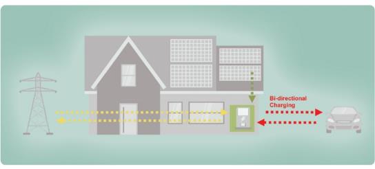 普通家庭平均每天的用電量為10-15 kWh。電動汽車的車載電池在充滿電后的電池容量為30 kWh至100 kWh,理論上可以作為應急電源解決方案使用數天。一方面,可以讓房主獲得廉價的電力;另一方面,也讓房主在住宅供電方面擁有更多的自主性。