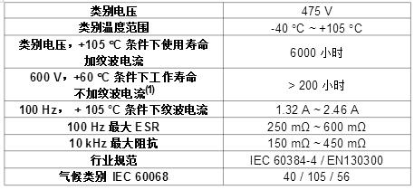 570 V電壓下,增強型193 PUR-SI Solar系列器件的最高工作溫度為+60°C,使用壽命5000小時(不加紋波電流),475 V電壓下,最高工作溫度可以達到+105°C,使用壽命6000小時。器件開路電壓高達600 V,設計者可用一顆電容器來實現600 V組串輸入電壓,用兩顆電容器實現1200 V組串輸入電壓設計,從而減少所需電解電容器數量,降低太陽能光伏逆變器總成本。