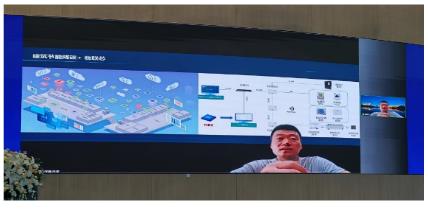 圖2.中國電科院能源互聯網技術研究院姚國風講解基于NB2的建筑降碳方案以及相應智能邊緣網關Demo展示