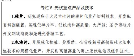 重點發展高效低成本硅片、電池片、組件、逆變器等產業,發展大尺寸、薄片化硅片技術,加快推進隧穿氧化層鈍化接觸(TOPCon)、異質結(HJT)、背電極接觸(IBC)電池技術研發及產業化,開展半片、疊瓦、多主柵、無主柵等先進組件及光伏建筑一體化(BIPV)產品技術研究及應用,突破新型低成本薄膜太陽電池、鈣鈦礦-硅疊層太陽電池產業化技術,發展集電力變換、遠程控制、在線分析、環境自適應等于一體的新型高效逆變器、控制器、匯流箱,鼓勵發展光伏充電寶、穿戴設備、交通工具等移動能源產品。加快延鏈補鏈強鏈,著力引進和培育一批代表性龍頭企業,集聚形成光伏玻璃-電池片-組件-逆變器-儲能系統-發電工程等較為完整的產業鏈,形成以光伏逆變器、電池片、組件企業為龍頭引領,光伏玻璃、邊框支架、儲能系統、系統集成上下游企業為支撐的產業格局。