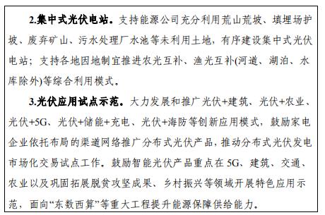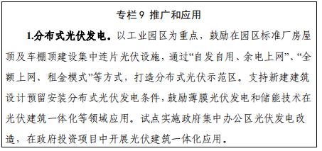 提升太陽能光伏發電效率和消納利用水平,探索開展源網荷儲一體化、多能互補的智慧能源系統和智能微電網建設。積極推進光伏建筑一體化建設,推動光伏在交通、通信、數據中心、農業、新能源汽車充電樁、海防建設等多場景應用,推進新技術、新產品與新模式先行先試。支持建設條件好、用電量大、電力消納有保障的工商業分布式光伏,有序推進大型地面光伏電站建設。落實“千家萬戶沐光行動”,鼓勵發展屋頂分布式光伏發電,支持整縣(區)屋頂分布式光伏開發,公共機構新建建筑屋頂光伏覆蓋率力爭達到50%,鼓勵地市對分布式光伏發電應用項目給予補貼和獎勵。開展多元化“智能光伏+新型儲能”試點示范,支持企業開展純綠電應用示范工程,培育一批國家級智能光伏示范項目,打造一批提供光儲融合系統解決方案的標桿企業。推動新型半導體照明產品在智慧城市、智能家居等領域應用,加快功率半導體器件等面向光伏發電、電力傳輸,新能源汽車、軌道交通推廣。