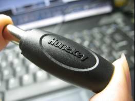 在電源的輸出端有著像棗核形狀的屏蔽磁環,連這個配件都一改以往電源適配器的圓柱體形狀設計看來航嘉的設計師真的是用心了。