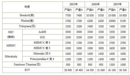 太陽能光伏需求擴張導致供應嚴重短缺,自2004年以來多晶硅價格一路飆升,2008年最高達450美元/kg,硅光伏產業鏈成為投資的寵兒,多晶硅投資擴產項目不斷,主要有3方面的力量:一是全球7家十大廠的擴產(美國的MEMC和Hemlock、挪威的REC、日本的Mitsubishi、SumitomoTitanium和Tokuyama、德國的Wacker),這類企業技術成熟成本領先;二是下游光伏企業向上游延伸建廠,如尚德、LDK;三是資本雄厚企業的多元化投資,如萬向集團(萬向硅峰)、精功集團(精功紹興太陽能)、天源集團(世紀新源)等。