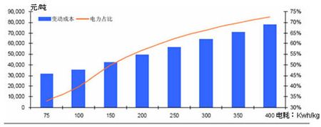 ● 國內企業在綜合電耗高的在300kWh/kg以上,電耗低的則在200kWh/kg左右