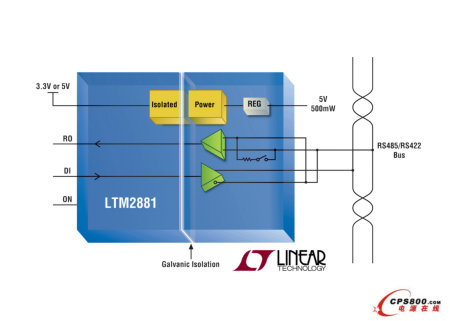 ●   3.3V (LTM2881-3) 或 5.0V (LTM2881-5) 標稱電源電壓選項