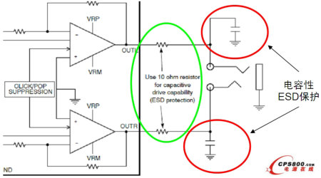 前所述,NCP2811這樣的真實接地設計易于實現ESD保護。對于NCP2811而言,它基本上是高性能的運算放大器,而運算放大器在驅動電容性負載時會變得不穩定。因此,如果設計中需要電容性ESD保護,建議在NCP2811輸出與ESD保護電路之間串聯增加2顆10 Ω電阻,從而將電容性負載效應降至最低。