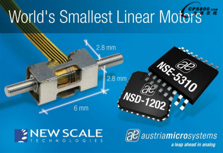 壓電式電機驅動器及定位編碼器與New Scale Technologies的微型SQUIGGLE®電機相結合,為手機、數碼相機、便攜式醫療設備及航空航天應用提供了世界最小尺寸、最高效且分辨率最高的運動控制系統。奧地利微電子的產品線加強了對這些市場客戶的服務和支持。