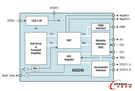 奧地利微電子全面的編碼器產品線的標準功能包括用戶特定零位編程、Chip-ID和用于磁鐵正確定位的診斷功能。AS5245的內部穩壓器使其可工作于3.3 V或5 V 電源電壓,并且工作環境溫度可高達150°C。AS5245采用無鉛、QFN 32封裝。