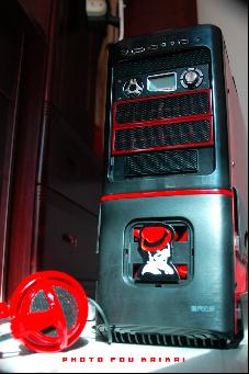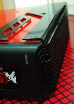改造完成后看上去更加YY了,鋼鐵黑的面板上加入了紅色的線條,下面杰克遜的頭像近看還是相當(dāng)逼真的。接口下方增加加了控制機(jī)箱內(nèi)部風(fēng)扇轉(zhuǎn)速的開關(guān),中間的LED屏可以顯示CPU、 硬盤 、顯卡溫度、 定時開關(guān)機(jī)等數(shù)據(jù),使用時對機(jī)箱內(nèi)狀況一目了然。■