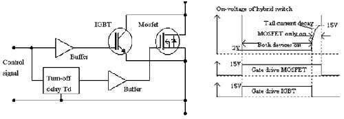 圖3 IGBT/MOSFET并聯組合開關電路及工作波形圖