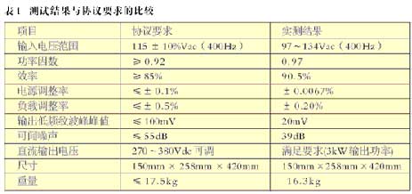 機上可供選擇的供電電源有兩種輸入方式:115V/400Hz中頻交流電源和28V直流電源。兩種輸入方式各有優缺點,115V/400Hz電源波動小,需要器件的耐壓相對較高;而28V直流電源卻相反,一般不能直接提供給設備部件使用,必須將供電電源進行隔離并穩壓成為需要的直流電源才能使用。下面主要介紹115V/400Hz中頻交流輸入方式所研制的開關電源,它的輸出電壓270~380Vdc可以調節,輸出功率不小于3000W,環境溫度可寬至-40℃~+55℃,完全適應軍品級電源的需要。