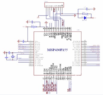 MSP430F155單片機具有非常豐富的片內資源,因此,最小系統無需配置過多的外圍接口芯片就可滿足本系統要求,其最小系統組成如圖2所示。