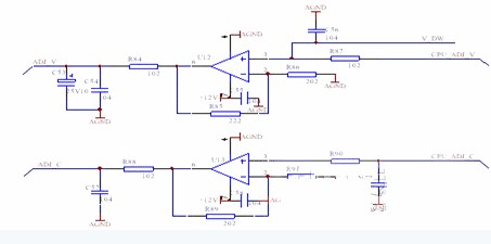 高頻開關電源輸出電流也隨著負荷變化,在幾安培到三十安培之間變化。模塊采用30A/75mV的分流器,將輸出的電流信號轉換為電壓信號,并通過放大電路把電壓信號升高到MSP430F155允許的幅值。運算放大器視精度要求使用,使用性能較好的運算放大器較容易達到較高的精度和較好的穩定性。此處選用BB公司的高精度運放OPA177。ISE-通過分流器采樣的毫幅級電壓值,經過調節反饋電位器VR3和R28的阻值得到IOC,再通過跟隨器及電位器VR2微調,以符合單片機采樣信號是電壓信號的要求。由于分流器的輸出和運放的地連在一起,減小了共模干擾。