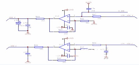 反饋信號處理部分主要完成強電信號與弱電信號之間的隔離和變換,該電路包括電壓信號分壓電路、電流信號放大電路、電平提升電路和濾波電路等。