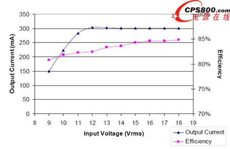 在電路配置方面,VBAT的額定電壓為-0.3至+40 V,因此整流橋上的輸入電壓高達24 Vac也是安全的。要保持較高輸入電壓水平就需要一個大容量的C1。大幅波動的經整流的AC電流將在雙倍AC線路頻率條件下把輸出電流拉至零,因此減少了輸出電流。220 μF的電容對這個設計已經足夠了。對于12 Vac輸入,C1額定電壓應該是25 V。由于需要較低的正向電壓,整流橋選用了MBR0520L表面貼裝肖特基二極管。