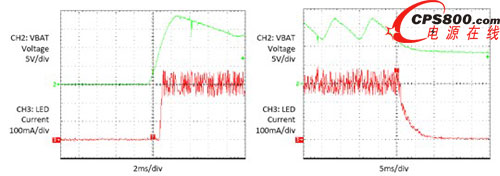 在根據圖1的電路圖配置的電路中,啟動和斷電瞬態如圖4所示。