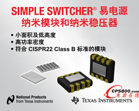在典型的空間受限的設計中,TI的新型納米電源模塊支持2.7 V至5.5 V輸入電壓范圍,可以配合納米電源穩壓器降低從中間電壓軌至負載點的電壓,這為空間和高度受限的應用提供了一個完整的電源管理解決方案。