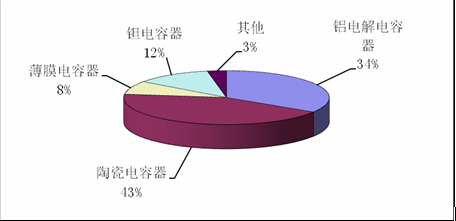 電容器約占整機電子元件用量的40%左右,而鋁電解電容器占整個電容器產量的34%。 鋁電解電容器由于具有電壓和電容量范圍寬、儲電量大、價格低的優勢,在消費電子產品應用中占44%,主要應用于電腦、彩電、空調、照相機等家用電器及數控車床等。