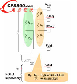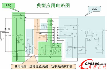 圖1是采用NCP1910的典型應用電路圖共用電路,它包括遠程PFC段、LLC段,以及實現導通/關閉、功率良好(PG)等的共用電路。