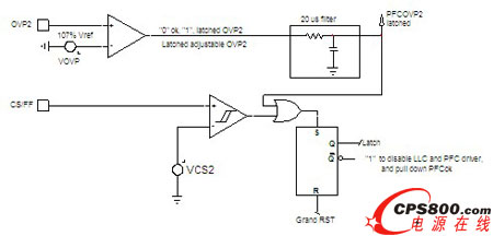用于上述電源設計的現有方案存在的最大問題是元器件數量太多,首先必須要有帶主電源輸入欠壓(LBO)保護功能的PFC控制器,還要有帶輸入欠壓(BO)保護及閂鎖功能的LLC控制器;用于處理“功率良好”(PG)信號的比較器,以及用于感測的額外電路也必不可少。此外,為了實現次級端過壓保護(OVP),需要可控硅整流器(SCR)、比較器及感測電路;為了提供LLC短路保護(SCP)并兼顧PFC工作異常狀況,還需要其他一些元件。如果能在一個單芯片中結合所有功能,實現一種組合控制器就可以使這些問題迎刃而解。