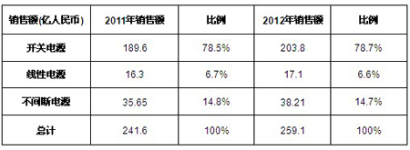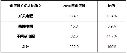 表1 2010年中國電源銷售細分產品分析