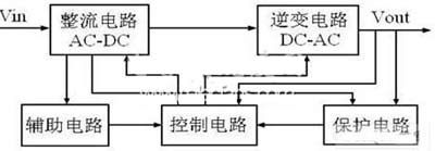 隨著各行各業控制技術的發展和對操作性能要求的提高,許多行業的用電設備都不是直接使用通用交流電網提供的交流電作為電能源,而是通過各種形式對其進行變換,從而得到各自所需的電能形式。現代逆變系統就是一種通過整流和逆變組合電路,來實現逆變功能的電源系統。逆變系統除了整流電路和逆變電路外,還要有控制電路、保護電路和輔助電路等。現代逆變系統基本結構如圖1所示。