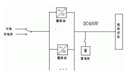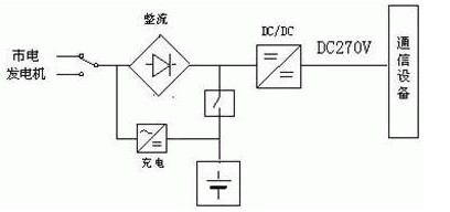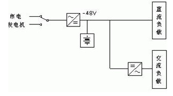 傳統(tǒng)的數(shù)據(jù)通信設(shè)備要求交流輸入電源,一般是與市電電源的電壓和頻率相同的電源,即220V,50Hz的單相交流電源。傳統(tǒng)的數(shù)據(jù)通信設(shè)備的電源系統(tǒng)是UPS系統(tǒng), UPS系統(tǒng)一般由整流器、逆變器、蓄電池和靜態(tài)開關(guān)等組成,市電正常時,市電經(jīng)整流器變換為直流電供給逆變器,同時給蓄電池充電,逆變器將直流電變換為交流電供給負(fù)載。UPS本身故障時負(fù)載可經(jīng)靜態(tài)開關(guān)轉(zhuǎn)換為旁路市電供電,市電長時間停電時,由備用發(fā)電機(jī)組供電。