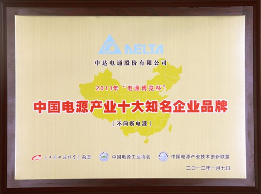在剛剛閉幕的IFPST2012 第十一屆中國電源產業發展高峰論壇暨第二屆中國電源產業技術創新聯盟年會上,臺達UPS在不間斷電源產品評選中,憑借優秀的產品性能與用戶信賴,斬獲2011電源行業“十大知名企業品牌”稱號的殊榮。