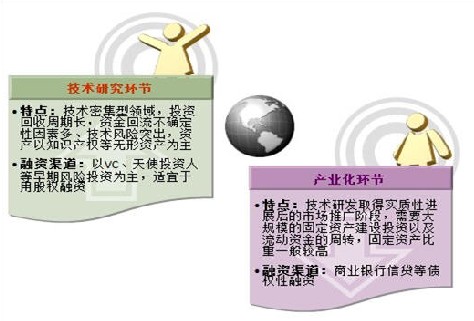 戰略性新興產業價值鏈的重點環節包括技術研究和產業化兩個階段,兩者不同的運營特點使得其對外融資渠道也有一定的差異性。研發環節屬于技術密集型領域,投資回收周期長,資金回流不確定性因素多、技術風險突出,尤其是基礎性研究和開創性產品創新領域的技術不確定性最大,只有行業內熟悉該領域的風險投資人對技術研發環節的融資感興趣。同時,技術研發實體的資產以知識產權等無形資產為主,很難向商業銀行提供有效的固定資產抵押等擔保方式,不符合商業銀行信貸準入門檻,所以戰略性新興產業研發環節更適宜采取股權融資。最典型的為生物醫藥產業,生物醫藥研發長周期、高投入、高風險特點明顯,且生物醫藥企業的專業性較強,風險資本等相對比較謹慎,只有專業的投資公司才有可能對處于研發期的生物醫藥企業進行風險投資。海普瑞(002399)是一家生物醫藥企業,在研發階段具有較高風險,先后接受了7家投資公司的股權投資,但這7家投資機構因多方面原因最終放棄其股權,而高盛在2007年海普瑞獲得FDA和CEP證書之際以491.76萬美元的投資進入,同年海普瑞便成為美國肝素鈉的國內唯一供應商,2010年海普瑞上市,高盛在三年時間里獲取了近90倍的賬面收益。