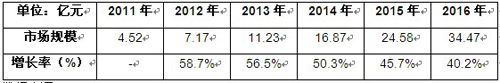 圖1 2011-2016年中國電動汽車充電樁市場規模