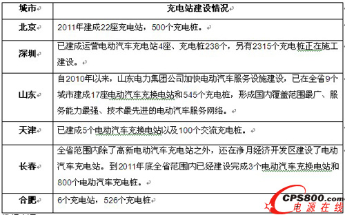 截止到2011年底,我國主要城市的充電站建設情況如下表。