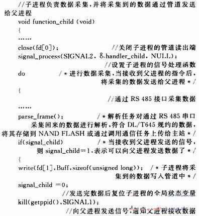 結合上面給出的設計思路,下面重點介紹如何利用多進程技術和管道技術來實現抄表和發送數據的功能。