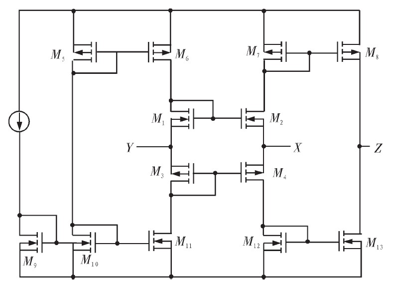 1996年,學者Alain Fabre等人基于跨導線性環特性提出了第二代電流控制電流傳輸器電路,而隨后的CCCII電路基本上也都是基于跨導線性環特性實現的。