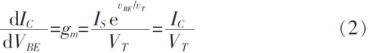 式(1)中:VT是熱電壓,在常溫下其值約26 mV;反向飽和電流,它對溫度敏感,每提高1攝氏度增加約9.5%,同時,近似于發射區面積成正比。對式(1)求微分,可以得到: