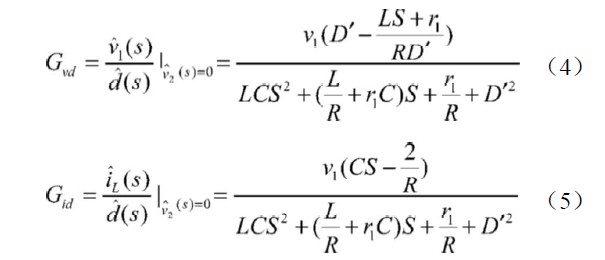 通過對該狀態(tài)空間平均方程進行干擾,可得到S 域的控制電壓(式(4))和控制電流(式(5))的傳遞函數(shù):