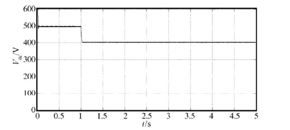 由以上兩組對比實驗可以看出,直流母線發(fā)生電壓暫降時,并入超級電容電壓暫降抑制裝置后,暫降抑制效果十分明顯,波形較為平穩(wěn),響應(yīng)時間為10 ms 左右且無較大波動,證明該裝置能有效抑制直流母線的電壓暫降。