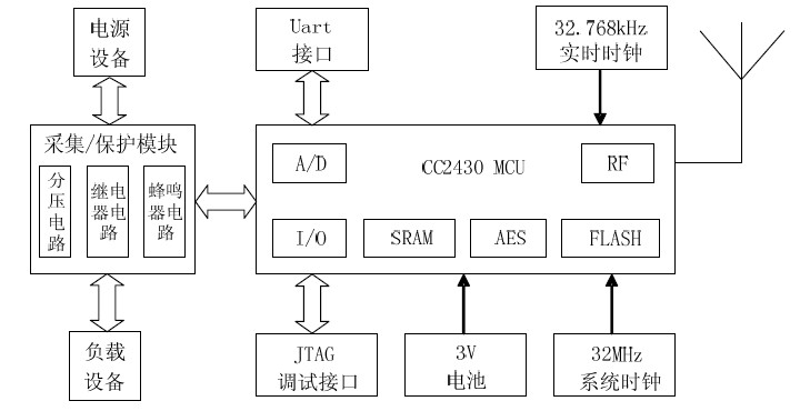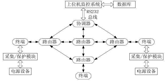 基于ZigBee 無線網絡的電源電壓監控系統框圖如圖1 所示。