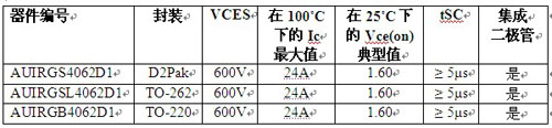 新IGBT器件也可以在適合標準通孔裝配的TO-262和TO-220封裝中使用。所有IR車用IGBT產品都遵循IR要求零缺陷的汽車質量理念,并經過了動態和靜態器件平均測試及100% 自動晶圓級目視檢查。新器件都采用IR的汽車級物料清單,環保、不含鉛,并符合電子產品有害物質管制規定 (RoHS) 。