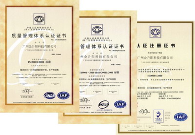 廣州金升陽(yáng)科技有限公司已于2005年7月18日通過(guò)ISO9001:2000質(zhì)量體系認(rèn)證的復(fù)評(píng),同時(shí)通過(guò)了ANAB(RAB)、CNAB及UKAS認(rèn)證。