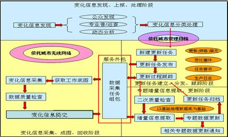 因此,如果能建立起一整套滿足城市空間信息快速采集更新需求的,依托現(xiàn)代通訊、物聯(lián)網(wǎng)、3S等技術(shù)的運(yùn)行保障機(jī)制和技術(shù)支撐體系,那么可以提高自動(dòng)化程度,明顯提高作業(yè)速度。這個(gè)運(yùn)行保障機(jī)制和技術(shù)支撐體系姑且就稱呼它為“在線測(cè)繪網(wǎng)絡(luò)”吧,通過對(duì)現(xiàn)有測(cè)繪與地理信息行業(yè)數(shù)據(jù)采集、更新工作流程優(yōu)化、服務(wù)模式調(diào)整、技術(shù)手段整合,建立其實(shí)時(shí)在線的測(cè)繪服務(wù)網(wǎng)絡(luò),提高城市空間信息更新效率。