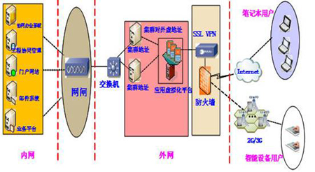 搭建實(shí)時(shí)在線的安全高速傳輸網(wǎng)絡(luò)環(huán)境:為了實(shí)時(shí)地為測(cè)繪工作提供支持,實(shí)現(xiàn)測(cè)繪數(shù)據(jù)使用的安全保密要求,有必要依托各地在建的城市空間基礎(chǔ)地理信息平臺(tái)框架的基礎(chǔ)上開展網(wǎng)絡(luò)安全等級(jí)保護(hù)三級(jí)系統(tǒng)建設(shè)。做到外網(wǎng)應(yīng)用請(qǐng)求能便捷訪問、強(qiáng)安全隔離下的雙網(wǎng)不失效、數(shù)據(jù)安全不泄密。安全移動(dòng)網(wǎng)絡(luò)的參考拓?fù)浣Y(jié)構(gòu)圖如下: