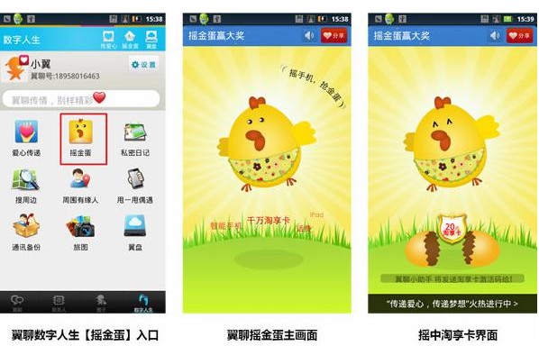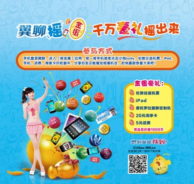用戶只需使用手機登陸翼聊,進入【搖金蛋】應用,搖下手機或者點擊小雞lucky,便可將千萬豪禮盡數收入囊中。