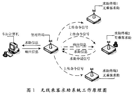 地鐵無線乘客求助系統由安裝于車站控制室的一臺車站計算機、一臺管理終端和分布在車站各處的多臺求助終端構成。當乘客需要求助時按下一臺求助終端的求助按鈕,此時安裝于求助終端上的求助信號燈由暗變為常亮表示求助信號已經發出。求助信號以無線方式傳送至管理終端,管理終端接收到求助信息后將其以有線方式傳送至車站計算機并由車站計算機顯示發送求助信息的求助終端的編號。車站管理人員點擊車站計算機上的求助響應按鈕對求助信息進行響應,響應信息以有線方式傳送至管理終端再通過無線方式傳送至求助終端,此時求助終端上的求助信號燈由常亮變為閃爍表示求助信號已被響應,乘客只需等待工作人員前來處理問題。