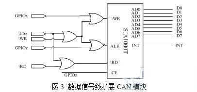 本文使用SJA1000T作為CAN控制器擴(kuò)展CAN模塊 。SJA1000T是使用于汽車和一般工業(yè)環(huán)境的獨(dú)立CAN總線控制器,具有完成CAN高性能通信協(xié)議所要求的全部必要特性;具有簡單總線連接的SJA1000T可完成物理層和數(shù)據(jù)鏈路層的所有功能。支持CAN2.0協(xié)議。
