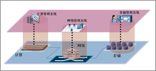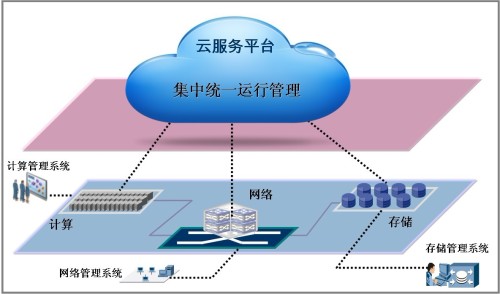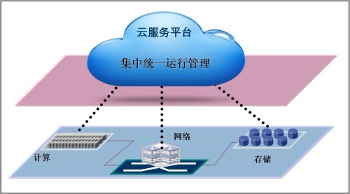 為了實現靈活的云計算服務,有些人提出了一種以統一集中的方式進行數據中心基礎架構的運行管理模式(如圖3所示)。這種模式下,云的操作管理平臺能夠對計算、存儲、網絡進行整合,在用戶操作平面上形成單一的界面,在邏輯結構、運行結構上很清晰,管理層次少。