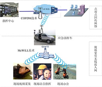 傳統應急指揮系統中個人通信手段單一,通信車與個人之間僅能提供簡單的語音功能。為了解決傳統應急通信方案的缺陷,本文提出了依托當地綜合數據網絡,采用國家通信標準和國際通信標準McWiLL寬帶無線通信技術(國家通信標準號YD/T 1989—2009;國際通信標準號M.1801)的解決方案。通過視頻傳輸用于電力應急指揮系統中,為電網突發事件情況下,提供電力故障搶修應急指揮通信手段,為生產系統、營銷系統的業務等業務部門提供快捷的應急通信方式,實現應急指揮信息接入統一的應急指揮平臺,決策信息和搶險信息實時化、可視化互傳,提高電網應對突發事件能力。