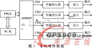 AD9959通過串行I/O提供了多種配置功能,基于這種串行I/O提供的一種SPI模式,同以往的ADI的DDS器件是兼容的。同時(shí),器件采用先進(jìn)的設(shè)計(jì)技術(shù),使器件不僅具有優(yōu)異的性能,而且又具有低功耗的特點(diǎn)。器件集成了具有突出的寬帶和窄帶SFDR特性的4路高速10位DACs。每一個(gè)通道,都具有32位頻率控制字,14位相位控制字,10位輸出幅度控制字。REF CLK最高可以達(dá)到500 M/s,PLL倍頻器可以通過軟件編程在4~20之間設(shè)定。正因?yàn)锳D9959具有能夠輸出多通道相關(guān)信號(hào)的能力,所以AD9959可以廣泛地應(yīng)用于各種場(chǎng)合。