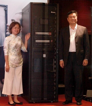 中達電通總經理游文人、 MCIS產品處總監陳冰為臺達InfraSuite靈動小機房揭幕