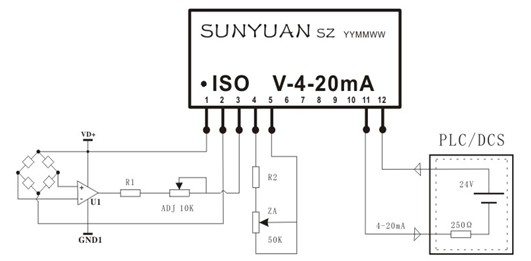 順源ISO V-4-20mA電橋檢測電路電壓信號隔離配送典型應用