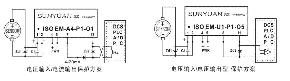 二、電壓輸入,電流與電壓輸出型隔離放大器變送器IC保護(hù)方案